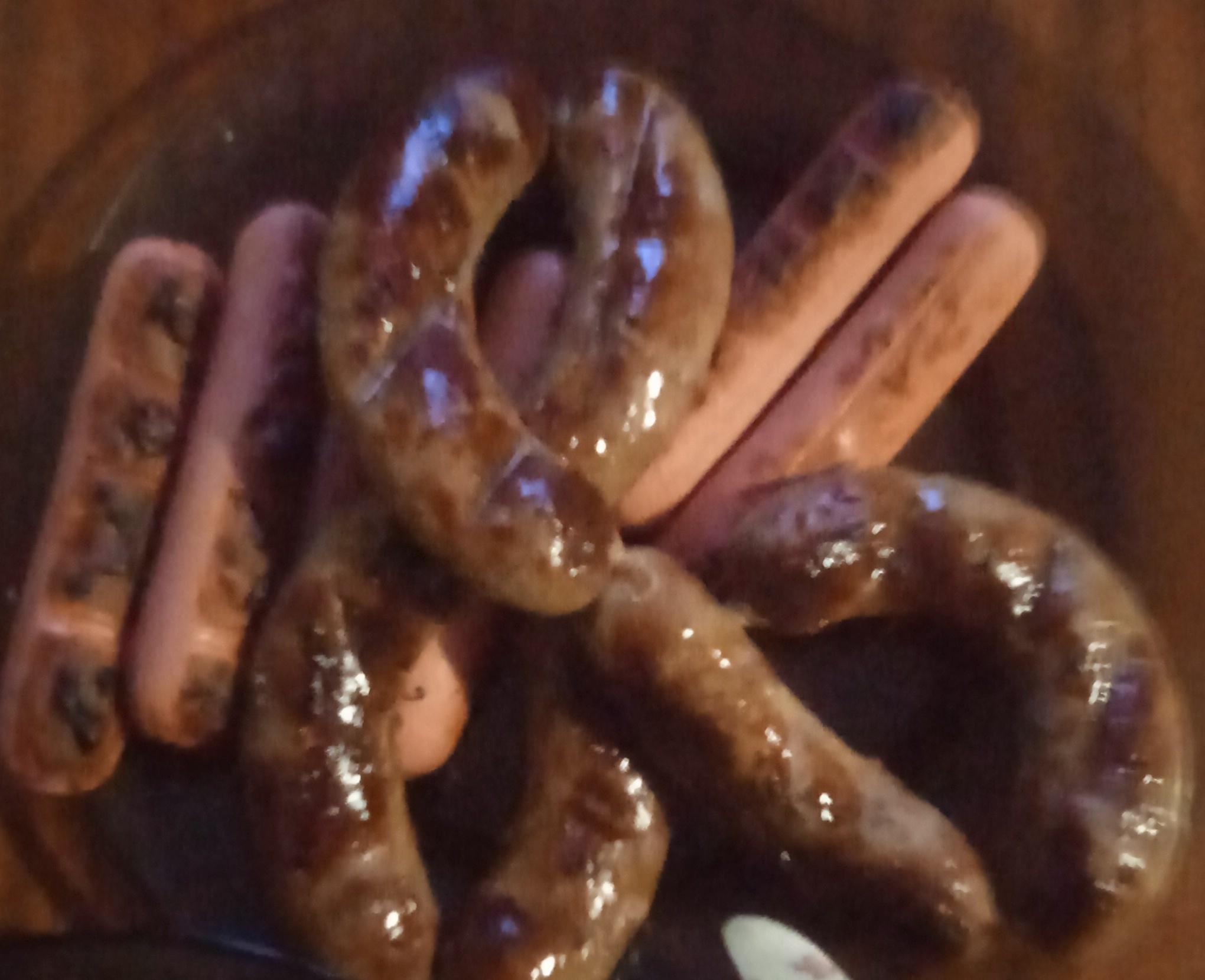 А для маленьких "неешеек мяса" у нас купаты домашние, своего приготовления и сосисочки (магазинные). За шутками прибаутками чуток не уследили, но всё равно вкусно. Ребятишки набегались, наигрались, аппетит нагулян, тарелки скоро опустеют.