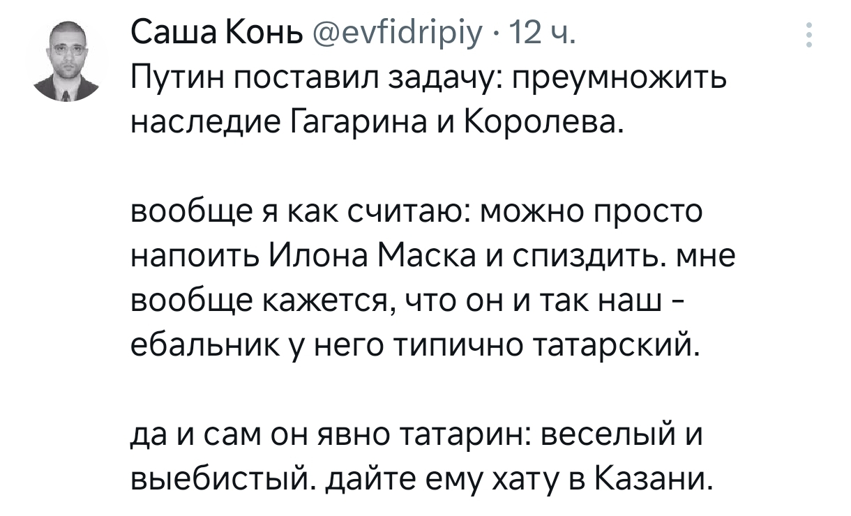 8500 Dememtor Уголок Копипастера Наука "Наш татарин"4 9 месяцев назад тг канал Скриншот Илон Маск X (Twitter) Космос Мат Telegram (ссылка) Саша конь Волна постов 371 46 23 2 1 Ещё 0