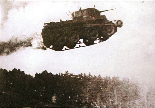 Конечно. Прыжки с трамплина - это же самая любимая фишка в 30-х годах! Перед приездом высоких чинов на учения на полигоне пилится трамплин. Затем БТ-7 разгоняются, притапливают и летят в лихом прыжке несколько метров. Все хлопают в ладоши, радуются, кричат "Слава Сталину!".