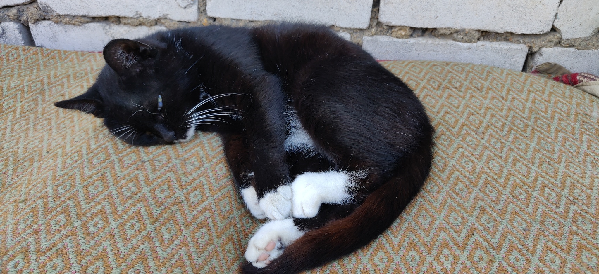 Наша Мура. Дамочке уже 14 лет, а мышей таскает на ура, хоть и с бельмом после боёв на глазу. Иногда были мысли посадить на цепь вместо сторожевого пса, очень грозная)) Но мы её все равно любим.