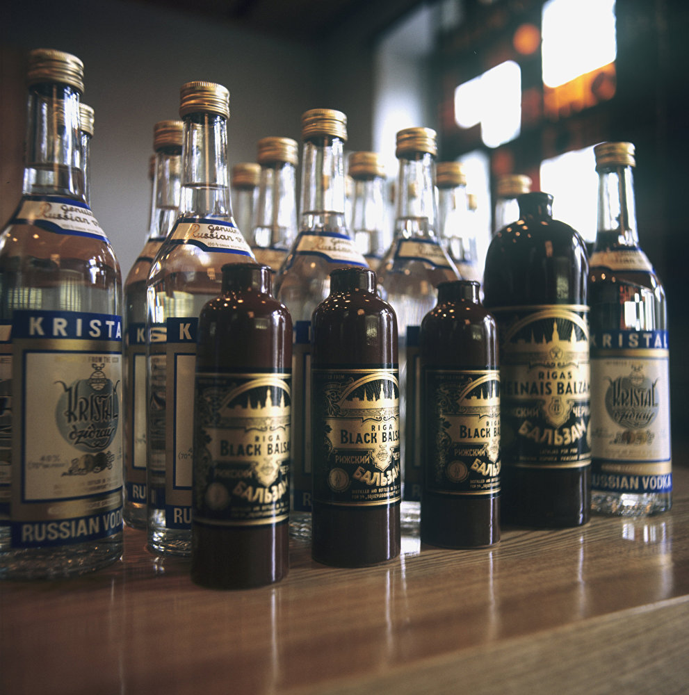 Рижский черный бальзам и водка завода "Кристалл". Юрий Абрмочкин, 1972.
