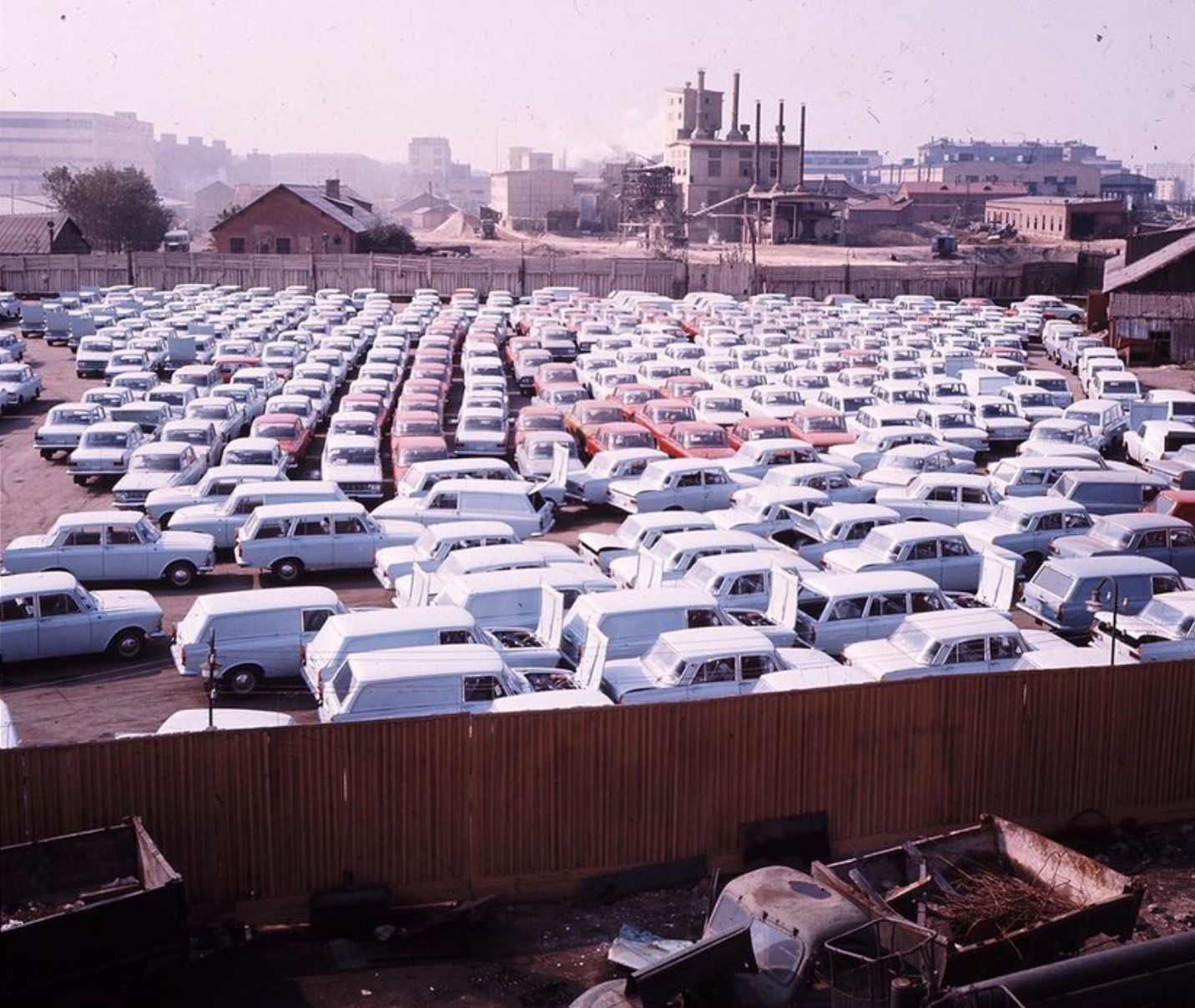 Готовая продукция АЗЛК, фото В.К.Хухлаева, 1972.