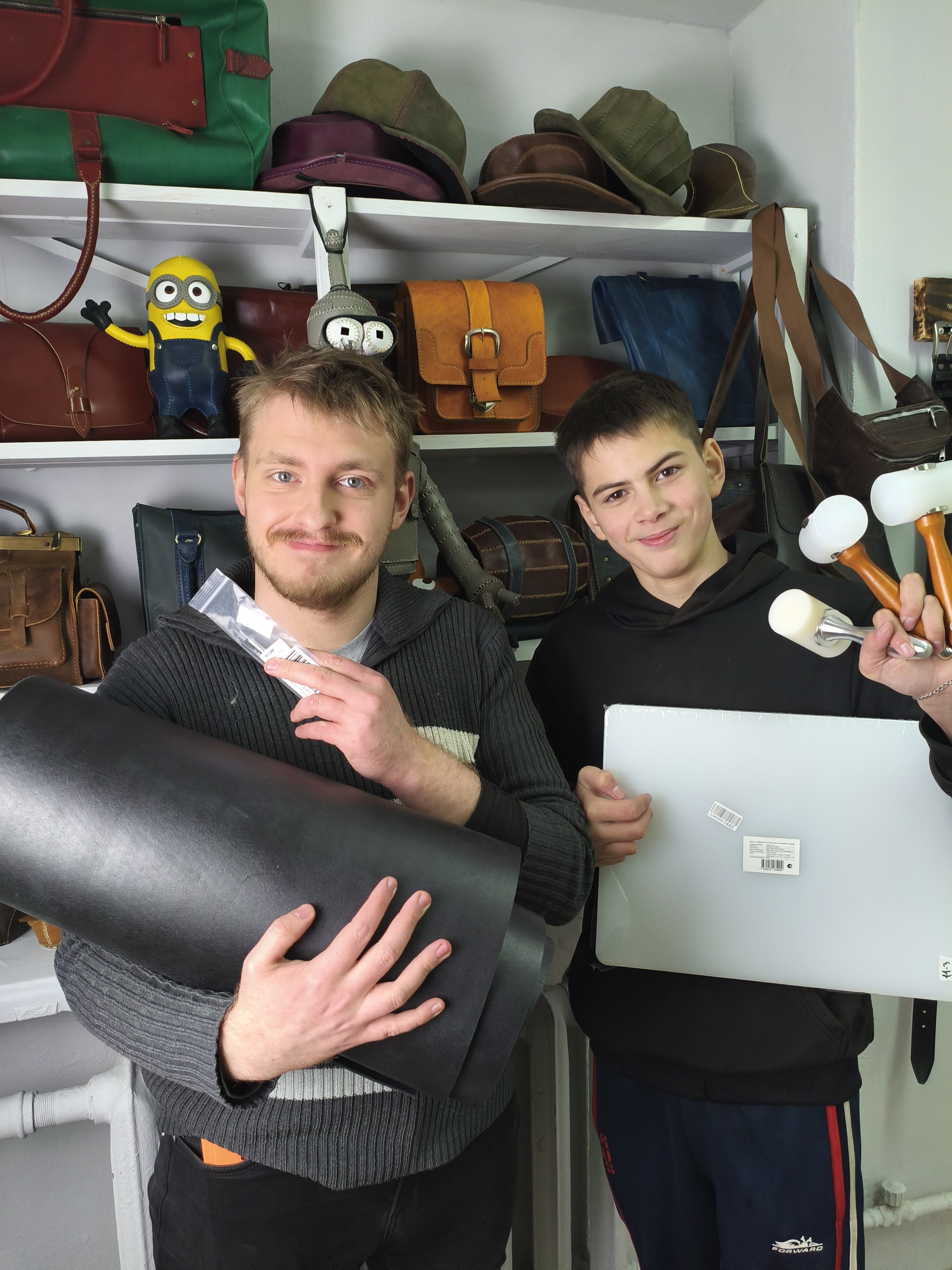 Нам ещё отправили кожу и инструменты, пару посылок (а инструменты и материалы это самое важное) но доставка сильно подвела. Но парни и так счастливы.