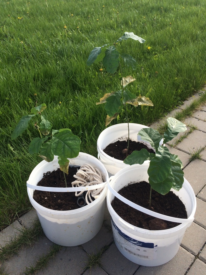 Мы посадили их в горшок. На всякий случай, три штуки сразу. Все три проросли. Так что мы их рассадили, а затем и вовсе высадили на участке перед нашим новым домом.