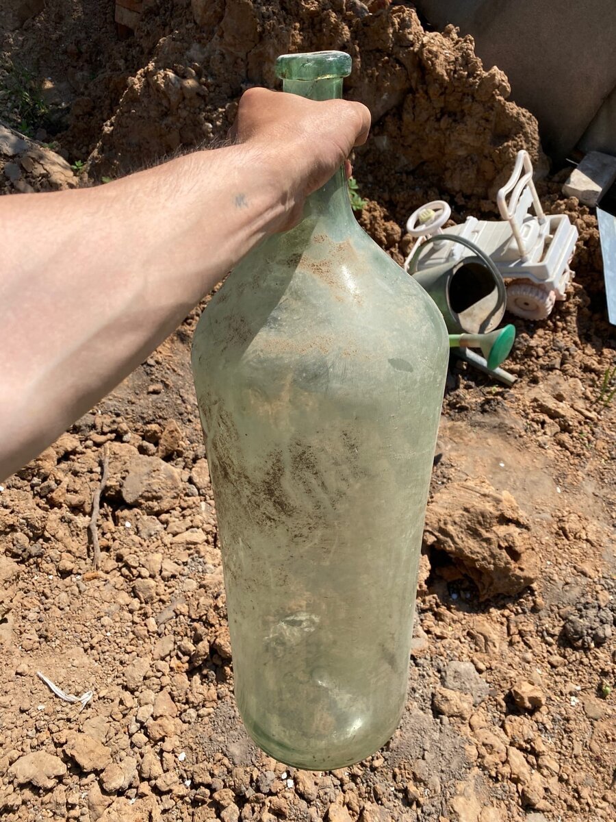 Нашел и забрал себе здоровые, старинные бутыли из деревенской заброшки