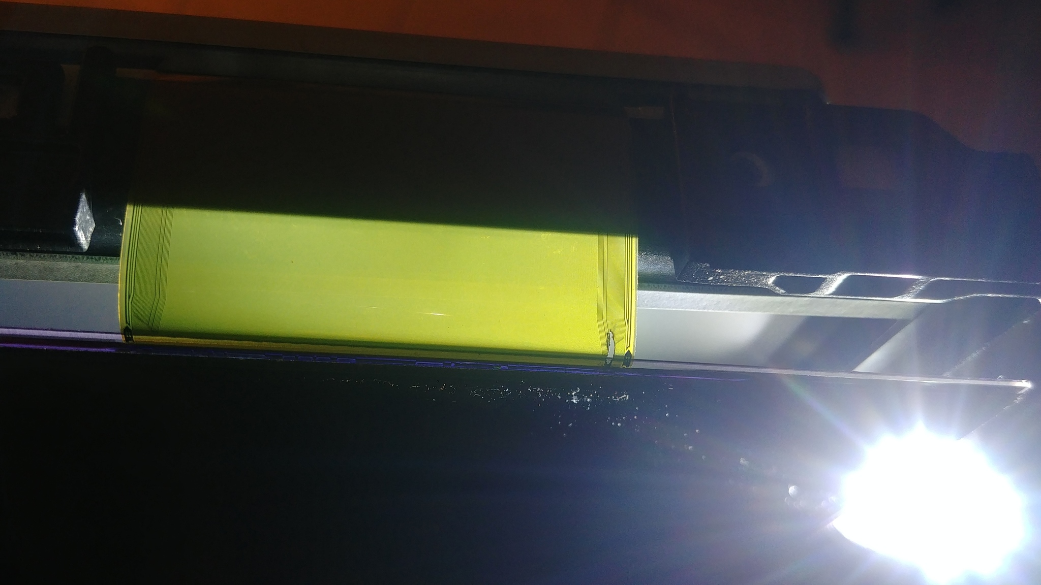 недолго посмотрев ролики на ютубе, я примерно начинаю понимать, что здесь произошло. И да, так и оказалось, поврежден один из шлейфов, на второй фотографии с включенным TV видно, как искрит поврежденный участок (маленькая белая точка)
