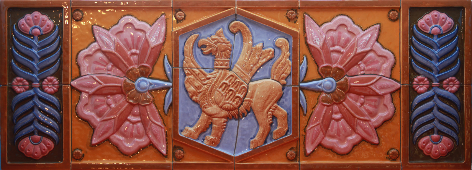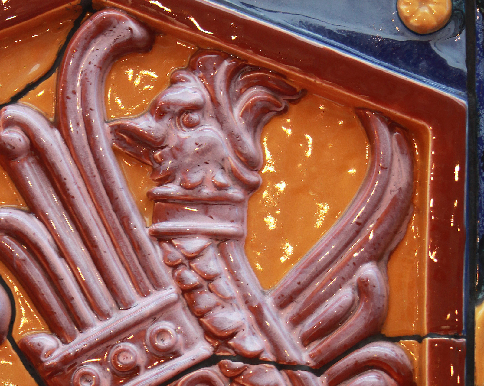 А дальше рельеф переводится в материал. В данном случае это глина и роспись глазурями.