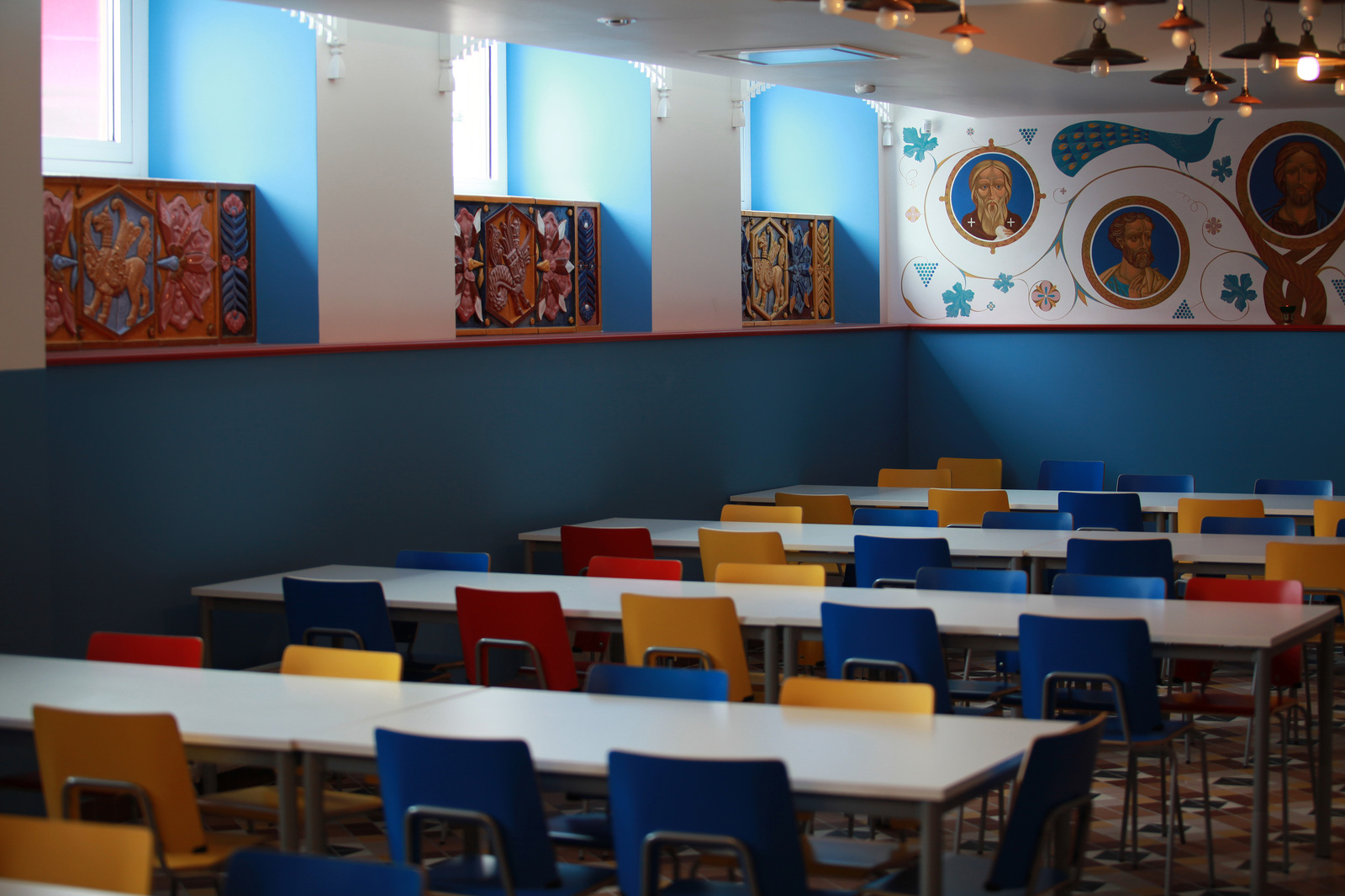 Музыкально одаренные дети должны питаться правильно и в окружении красоты. Поэтому столовую в школе украшают наши изразцы.