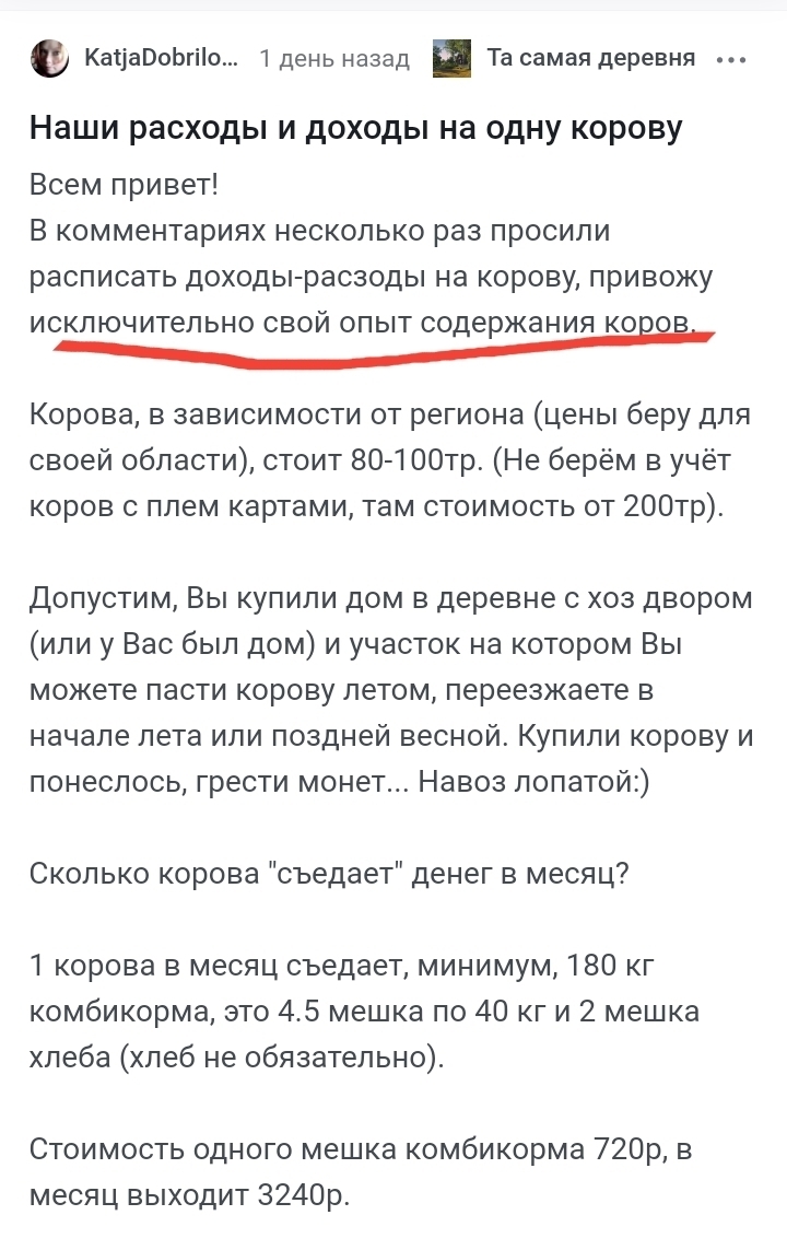 В комментариях несколько раз просили расписать доходы-расзоды на корову, привожу исключительно свой опыт содержания коров.