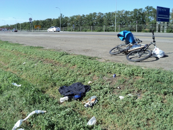 И вот, в Крыму пришлось мне свои траты поубавить в связи с такой ситуацией, но деньги всё равно кончились 29 июля, как раз после проезда Крымского моста. Как сейчас помню, на последние рубли были куплены два куска мыла и рулон туалетной бумаги, чтобы было чем мыться вплоть на Москвы, а то в получении пособия я очень сомневался. Пропитание меня совершенно не беспокоило, бесплатную качественную еду я давно уже научился добывать прямо из воздуха. Вот, кстати, мои первые бесплатные находки с обочины на хуторе Коржевский: