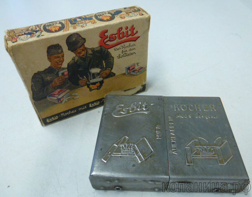 ESBIT - сокращение от "Erich Schumms Brennstoff in Tablettenform" (Топливо Эриха Шума (1907-1979) в таблетках). Сухое горючее Erich Schumm изобрел в 1932 году. Фирма Esbit существует с 1936 года и по сей день.