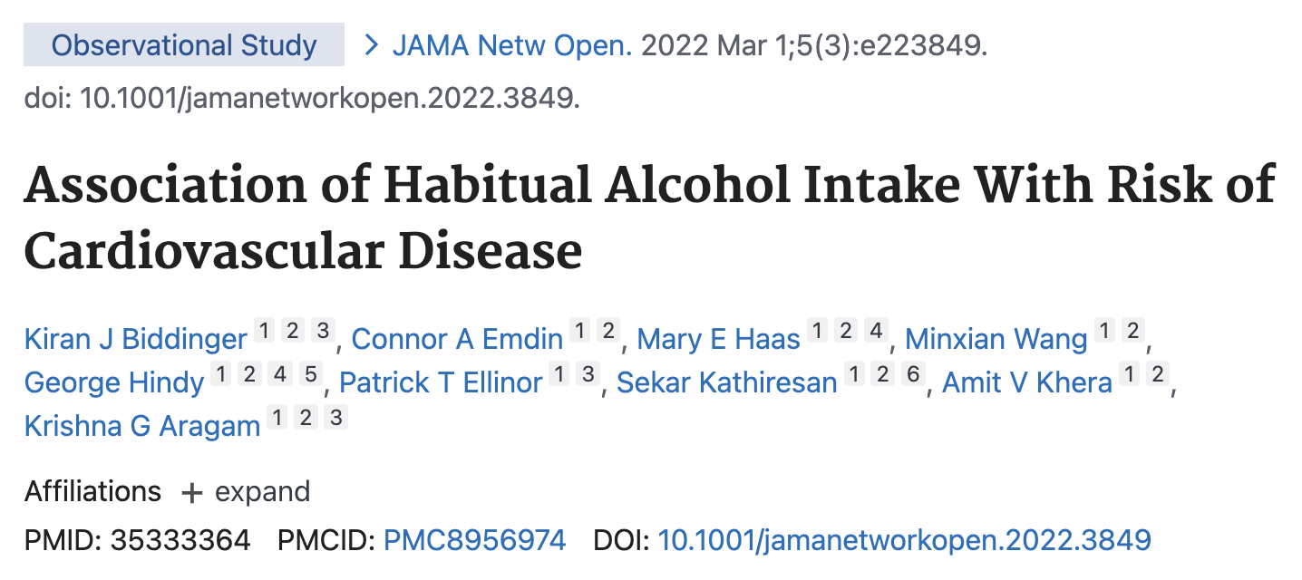 Сначала они действительно получили знакомую J-образную кривую на графике: люди, употребляющие небольшие количества алкоголя, выглядели более защищёнными от болезней сердца. Но при более внимательном анализе стало ясно, что этот «эффект» связан не с алкоголем, а с образом жизни. Люди с редким и умеренным употреблением алкоголя реже курили, больше двигались, лучше питались и в целом чувствовали себя здоровее.