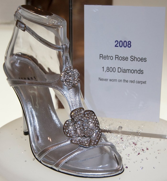 Туфли-лодочки Retro Rose от уже известного нам лидера в области создания эксклюзивной обуви, Стюарта Вайцмана, представляют собой модель, относящуюся к стилю 40-ых годов. Серебристые лодочки с т-образным ремешком и высоким позолоченным каблуком украшены розочками, усыпанными более 1 800 бриллиантами, общим весом около 100 карат. Столь серьезный арсенал драгоценных камней вполне объясняет их стоимость, которая достигает 1 000 000 долларов. Ежегодно Стюарт Вайцман подбирает для своих изысканных и баснословно дорогих туфель новую голливудскую звезду, которая эффектно прошествует в них по красной ковровой дорожке на главном событии в мире киноиндустрии.