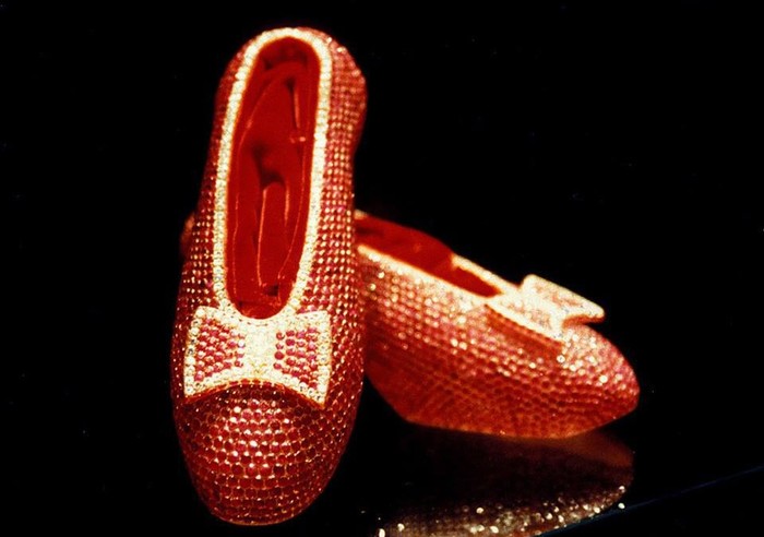 “Рубиновые босоножки” – еще одно творение Стюарта Вайцмана, созданное под влиянием сказки “Волшебник страны Оз”. Вдохновленный башмачками Дороти, он разработал босоножки на 11-сантиметровых шпильках, обшитые вишнево-красным атласом с платиновыми вставками, щедро украшенными 642 овальными и круглыми рубинами, общий вес которых составляет 123,33 карата. Планировалось, что первое появление рубиновых босоножек на широкой публике состоится на церемонии вручения Оскаров в 2003 году, однако актриса Джуди Гарланд, которая должна была предстать в них на красной дорожке, не надела их на это мероприятие. Позже они все-таки были представлены на выставке в Лондоне. Стоимость “Рубиновых босоножек” составляет весьма солидную сумму – 2 000 000 долларов.