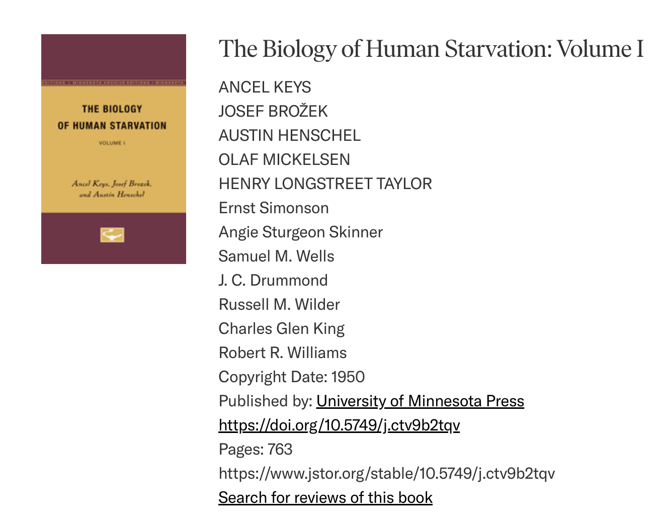 2. Keys A, et al. (1950). The biology of human starvation. Univ. of Minnesota Press.
