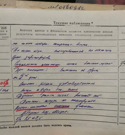 Нашла ещё записи этим почерком. Тут можно разобрать "по линии матери гипертония", "по линии отца" - непонятно