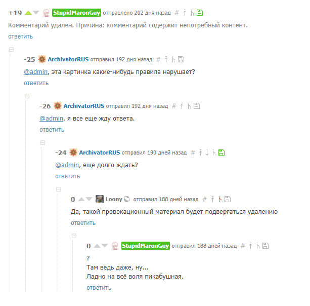 Но у меня не было желания наказать какого-то модера, мне больше хотелось узнать у админа его мнение насчет этой картинки: нарушает ли она какие-нибудь правила.
