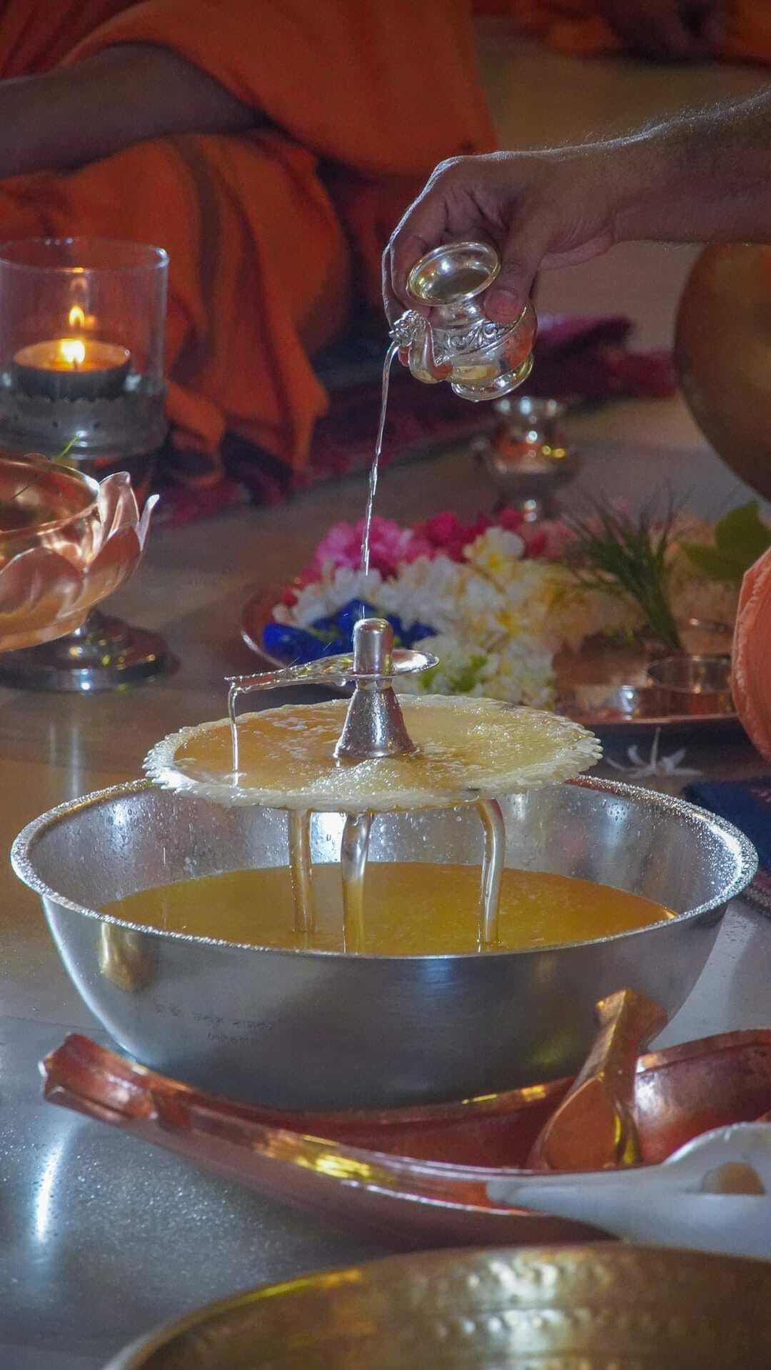 Когда вы поклоняетесь, необходимо сосредоточить ум на Божестве. Что мы подразумеваем под поклонением? Отдавать вещи Бога Ему же. Совершает кражу тот, кто берет пищу, не предложив ее сначала Ему. Бог приходит, когда поклонению сопутствуют вера и преданность, иначе Он от вас убегает.