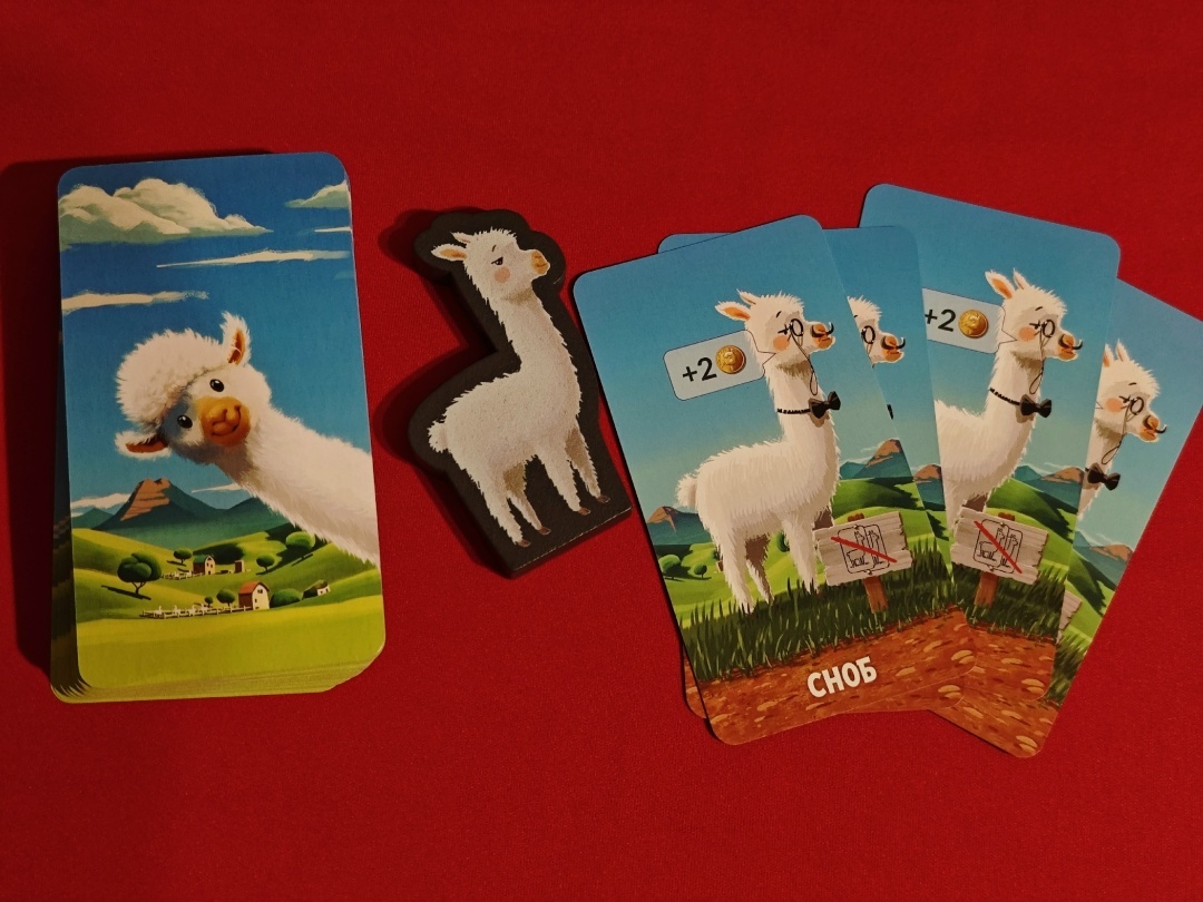 Геймплей и реиграбельность. В игре 8 типов белых альпака и 12 коричневых, из которых на рынок выходят 4 и 6 соответственно, так что учитывая количество возможных комбинаций, переживать за реиграбельность не стоит. Что касается геймплея, то не стоит ждать от Альпака сверхмощных комбинаций. Но тем не менее, в игре можно проворачивать комбушечки. А также важно научиться выстраивать баланс между покупкой новых альпака и отправкой своих на ферму, ведь при неграмотном расчете вы рискуете остаться без ценных карт, если отправите их рано на ферму, либо собрать огромную колоду, а потом ждать, когда же придут нужные карты.