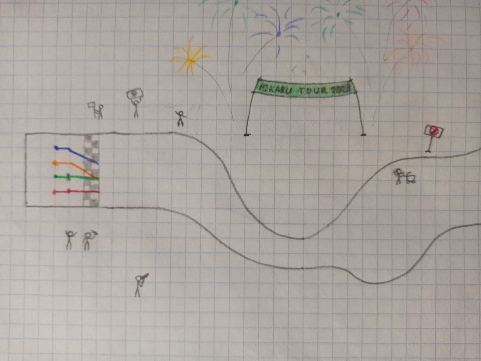 Для начала нам потребуется несколько листов в клеточку, на которых необходимо заранее нарисовать трассу. Почему несколько? Во-первых, чем длиннее трасса, тем веселее! Ну а во-вторых…