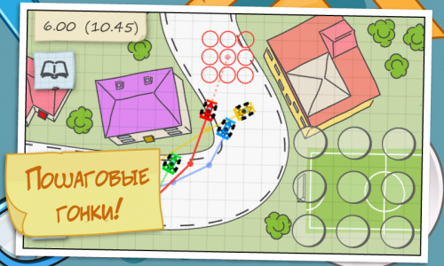 Слева перед стартом четыре точки разных цветов – это участники гонки. В этом прелесть этой игры, что играть могут два и более игроков!