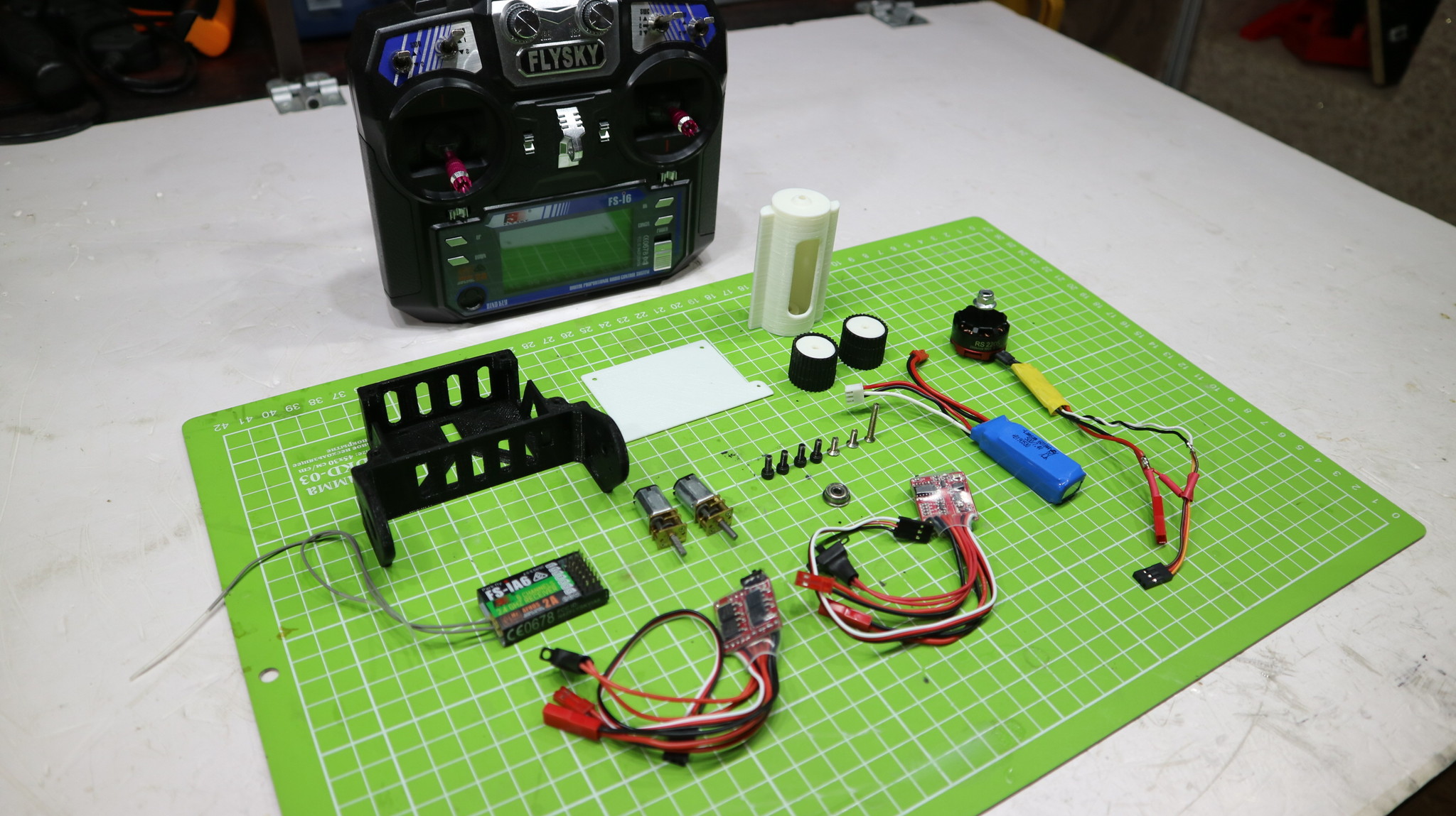 На этот раз набросал свой собственный проект бота, чтобы быть уверенным, что все железки в него поместятся. Все детали напечатаны ПЛА пластиком. Сопло 0.5, слой 0.2 мм., заполнение 30%.