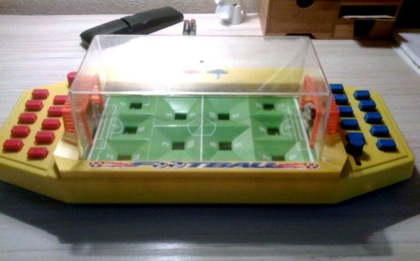 Самой распространенной была игра, где подпружиненные фигурки стояли на месте. Когда мяч попадал к фигурке футболиста твоей команды, нужно было оттянуть ее и отпустить. Таким образом можно было наносить удары или отдавать передачи. Минусом такой игры было довольно кривое поле, так что мяч попадал далеко не ко всем фигуркам.
