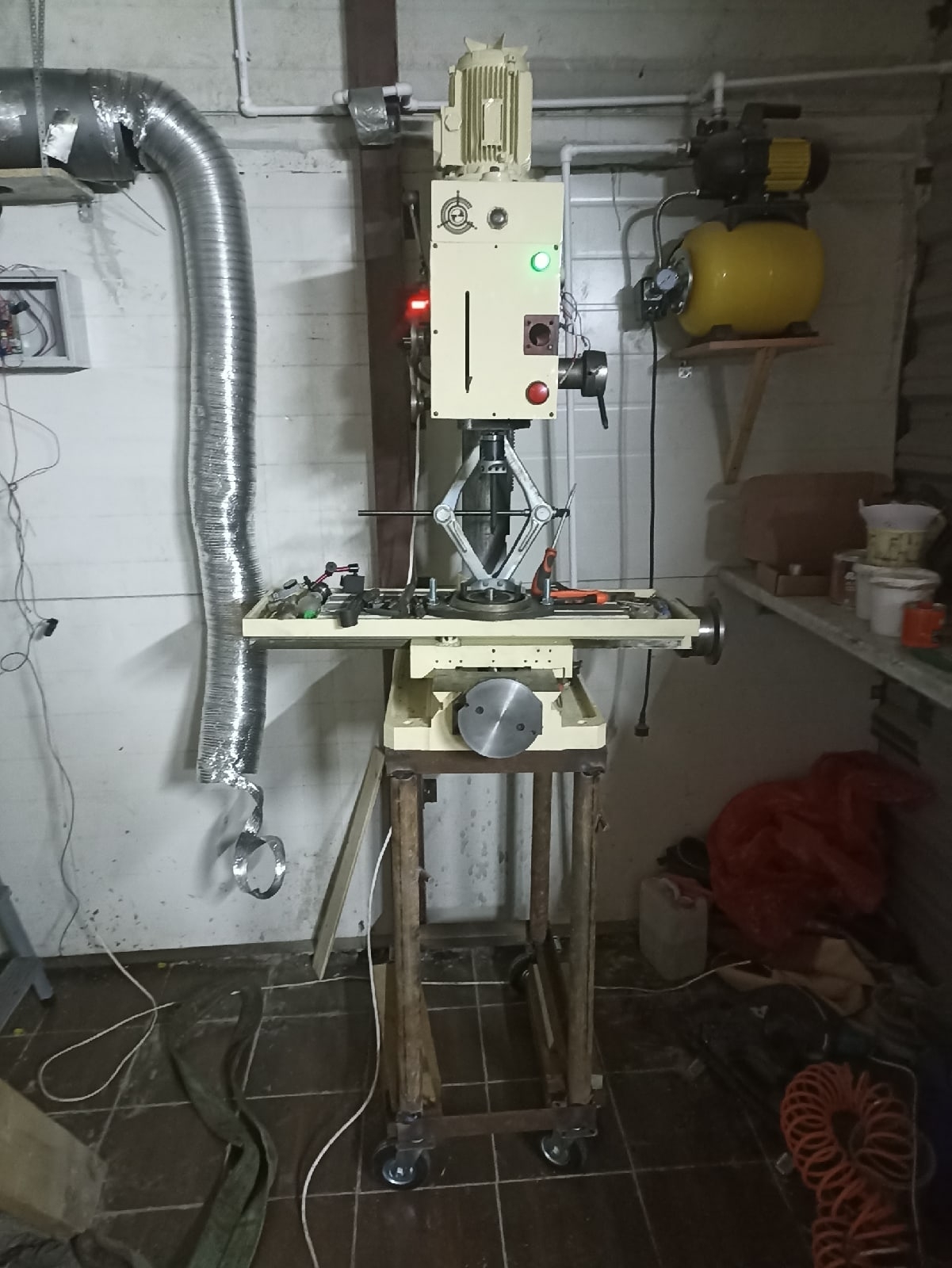 Ну и мотор на 1,5кВт на 3ф,переведен на частотник 1ф,учитывая наличие 9передач в коробке,то прекрасно тянет и мощности хватает и на сталь и на цветмет.
