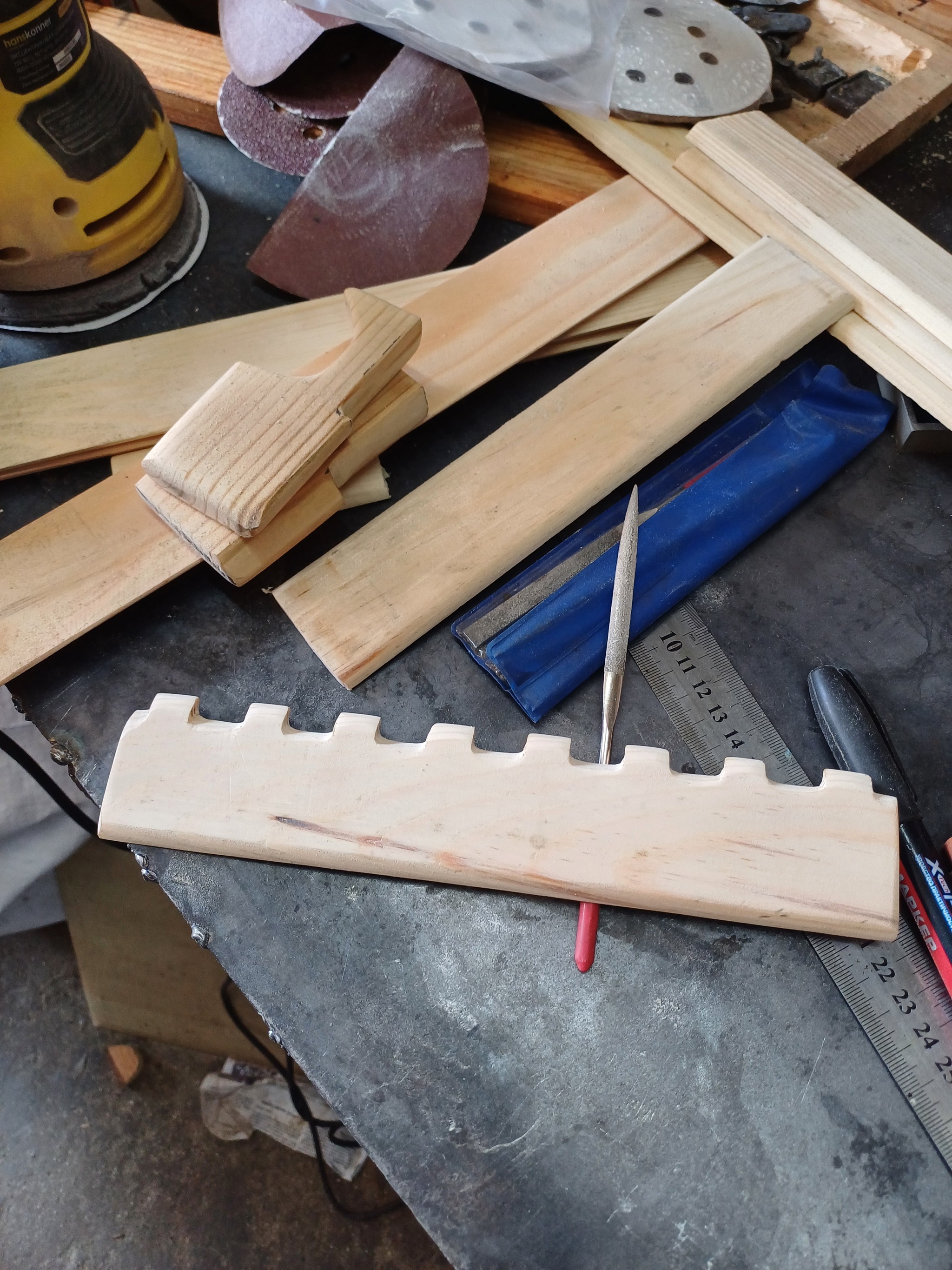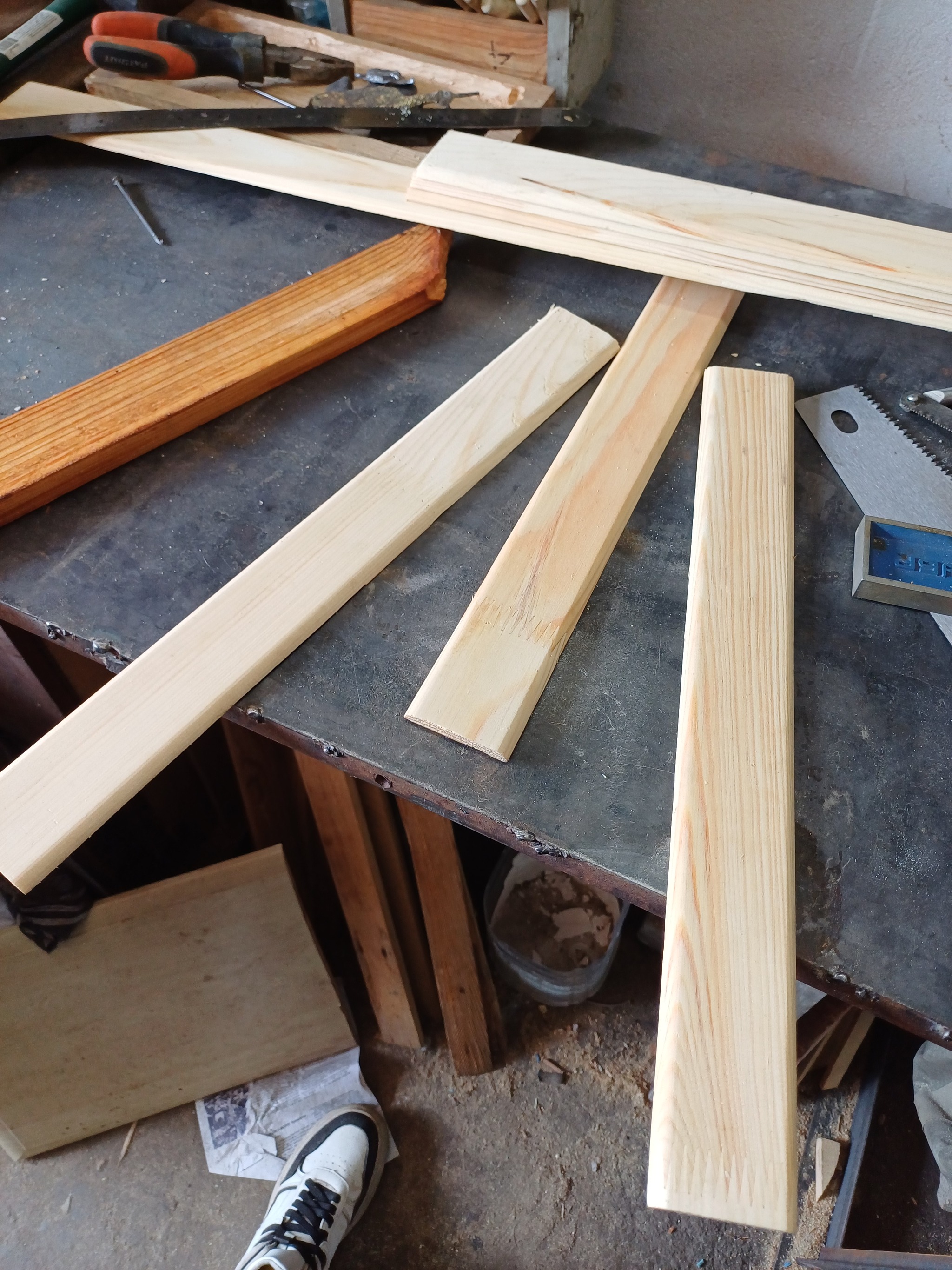 С помощью этих деталей я планирую крепить "полочку", на которую буду ставить холстики. Поэтому, бумажно подумав, делаю паз. Сейчас пока ничего не ясно, но в моем регионе давно не идут затяжные дожди, так что прояснится.
