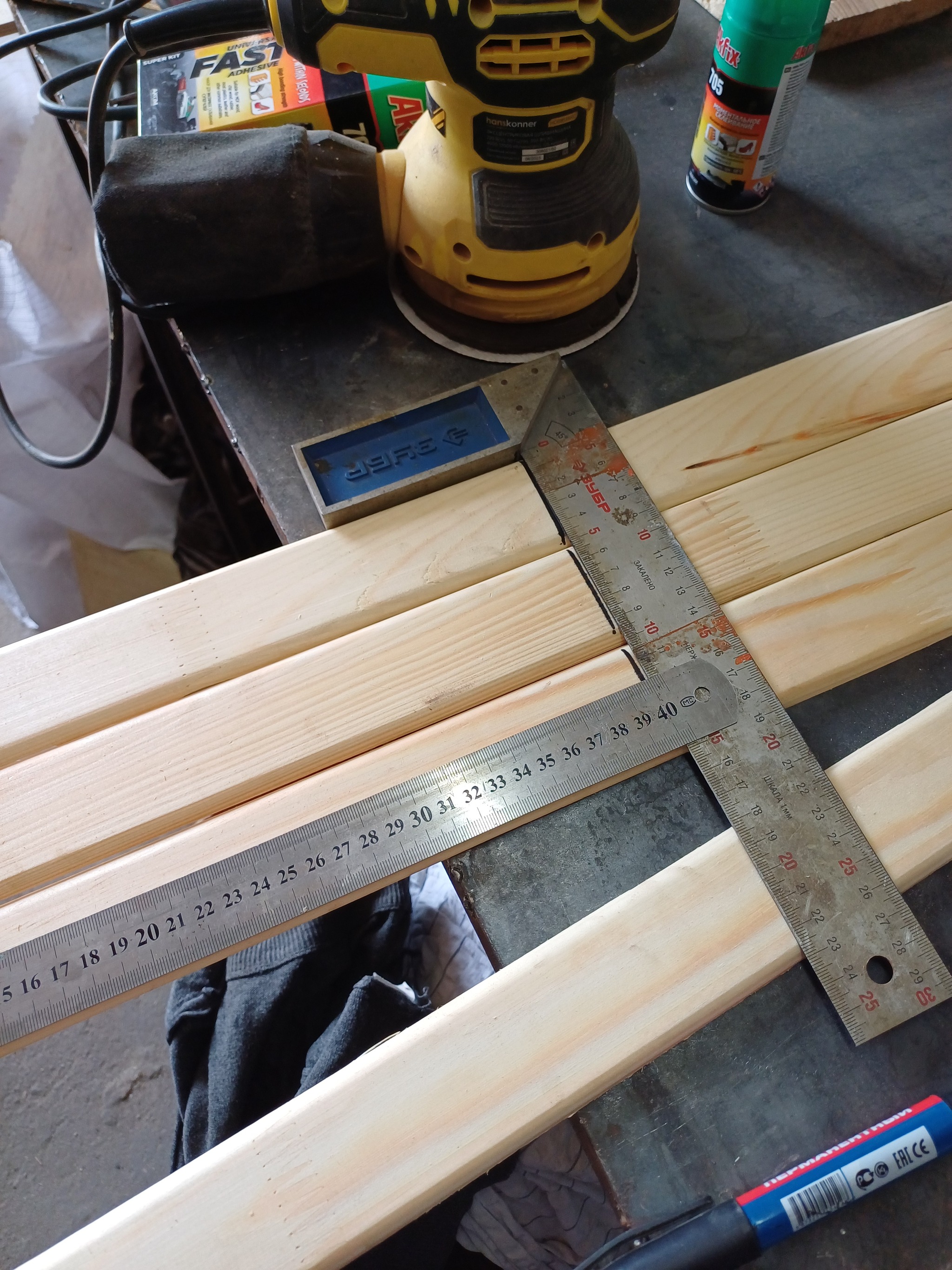 Размечаю 3 детали по 40 см и не щадя живота своего пилю их здоровой такой пилой.