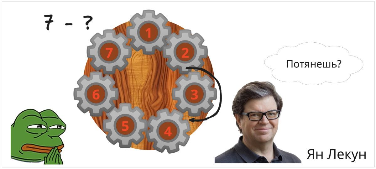 Тогда через месяц он придумал усложнение: «7 стержней равномерно распределены по кругу. На каждом стержне установлена шестерня, так, что она находится в сцеплении с шестернями слева и справа. Шестерёнки пронумерованы от 1 до 7 по кругу. Если бы третья шестерня была повернута по часовой стрелке, в каком направлении вращалась бы седьмая?». Родители с детьми в начальной школе уже словили флешбеки от домашки по физике, но теперь они хотя бы узнают, что... GPT-4 и на такой вопрос даёт правильный ответ.