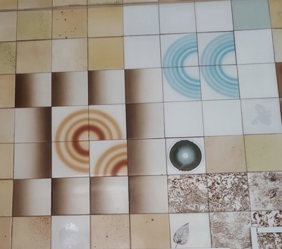 Какая-то система просматривается, но плитка разная. Ну, мало ли, может из остатков брали, или вообще бесплатно. Плитка и плитка. Но в голове одна мысль - да как так-то?