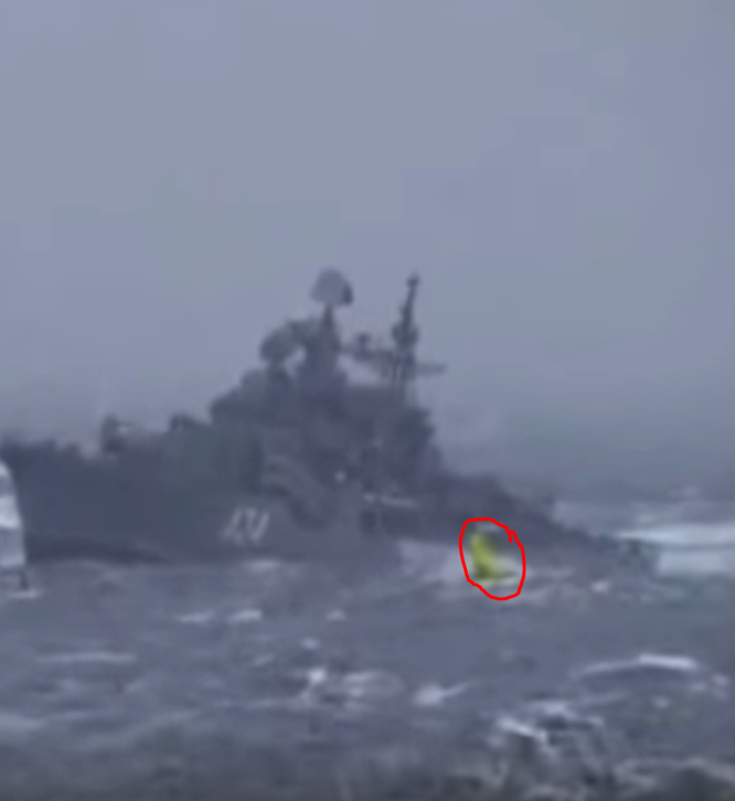 Эсминец "Адмирал Ушаков" с залитым дизелем, с креном идёт в шторм
