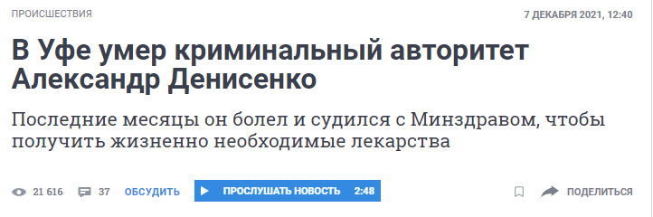 В ноябре Кировский суд постановил обеспечить Денисенко запрашиваемыми лекарствами. Однако это его не спасло.