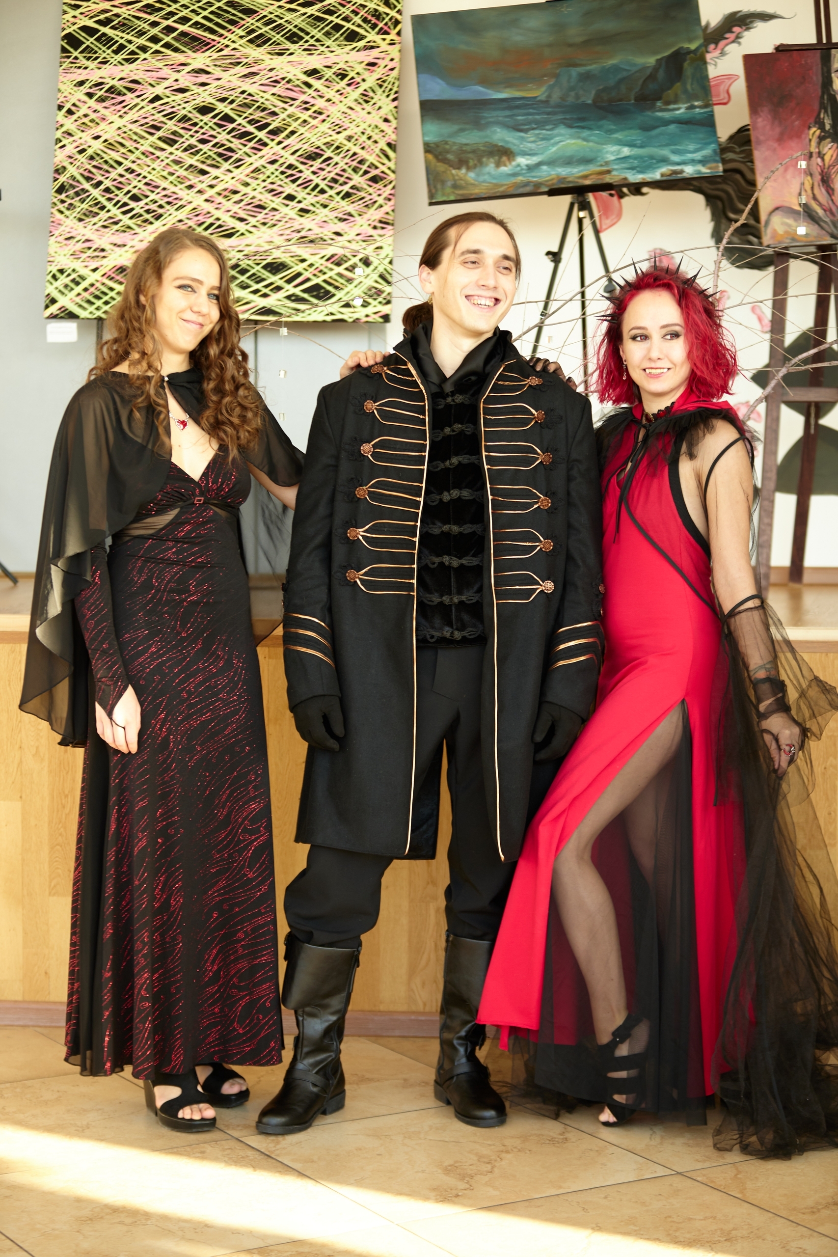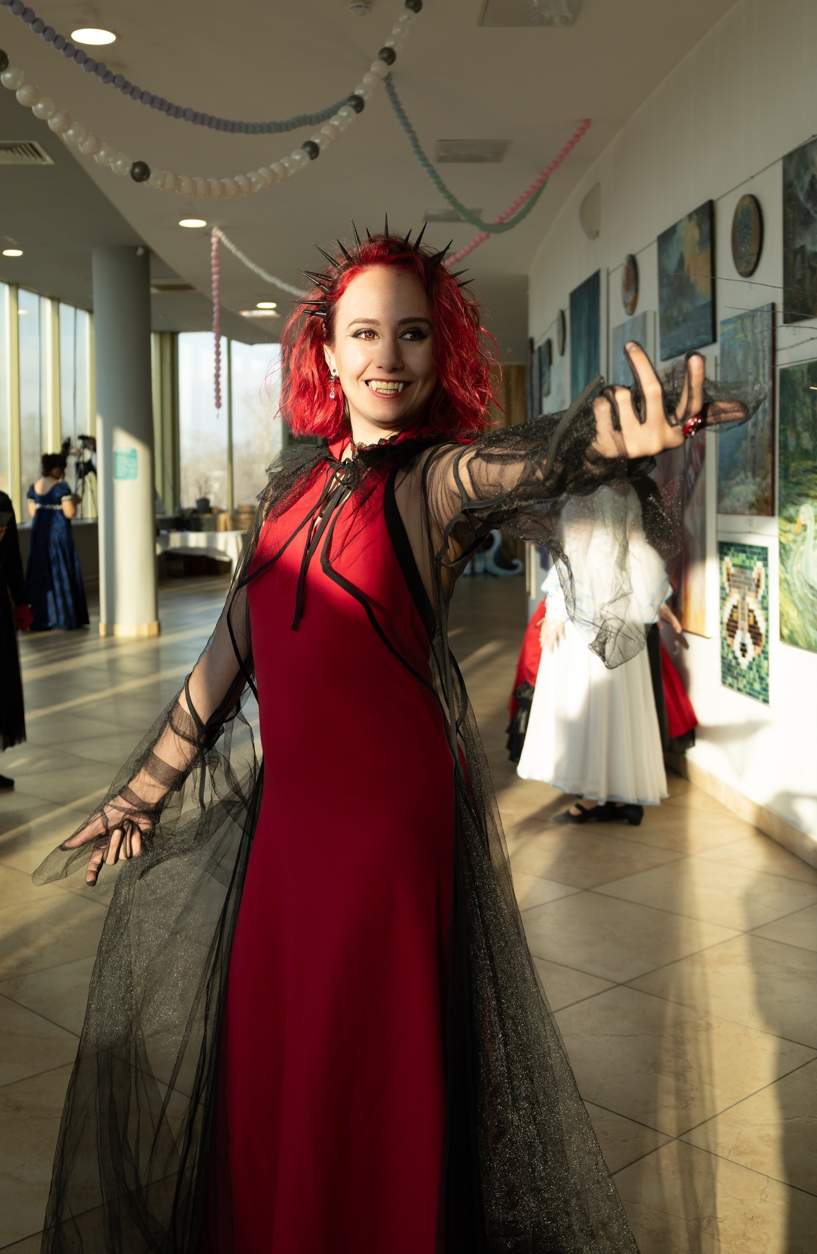 Бал был посвящен Грибоедову и назывался "Герой твоего романа", соответственно можно было выбрать любого книжного персонажа и собрать по нему костюм. Муж решил косплеить Дракулу, поэтому я взяла себе образ высшей вампирши Итании из цикла "Ремесло" Алекса Коша.