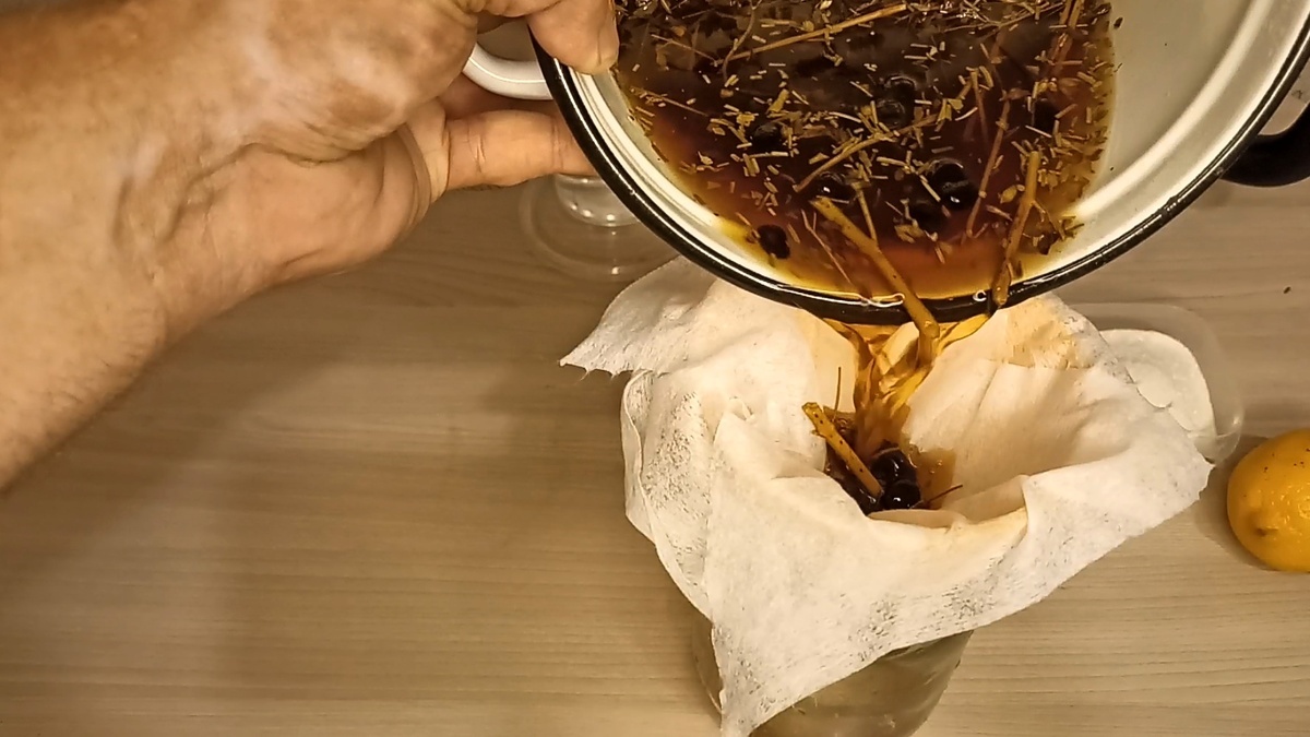 Полученный настой довести до кипения и добавить сахар с лимонным соком, хорошо перемешать и снять с плиты. Дать остыть до комнатной температуры и залить самогон. Полученную настойку оставить отдохнуть ещё на 2-3 дня в стекле. И можно пробовать!