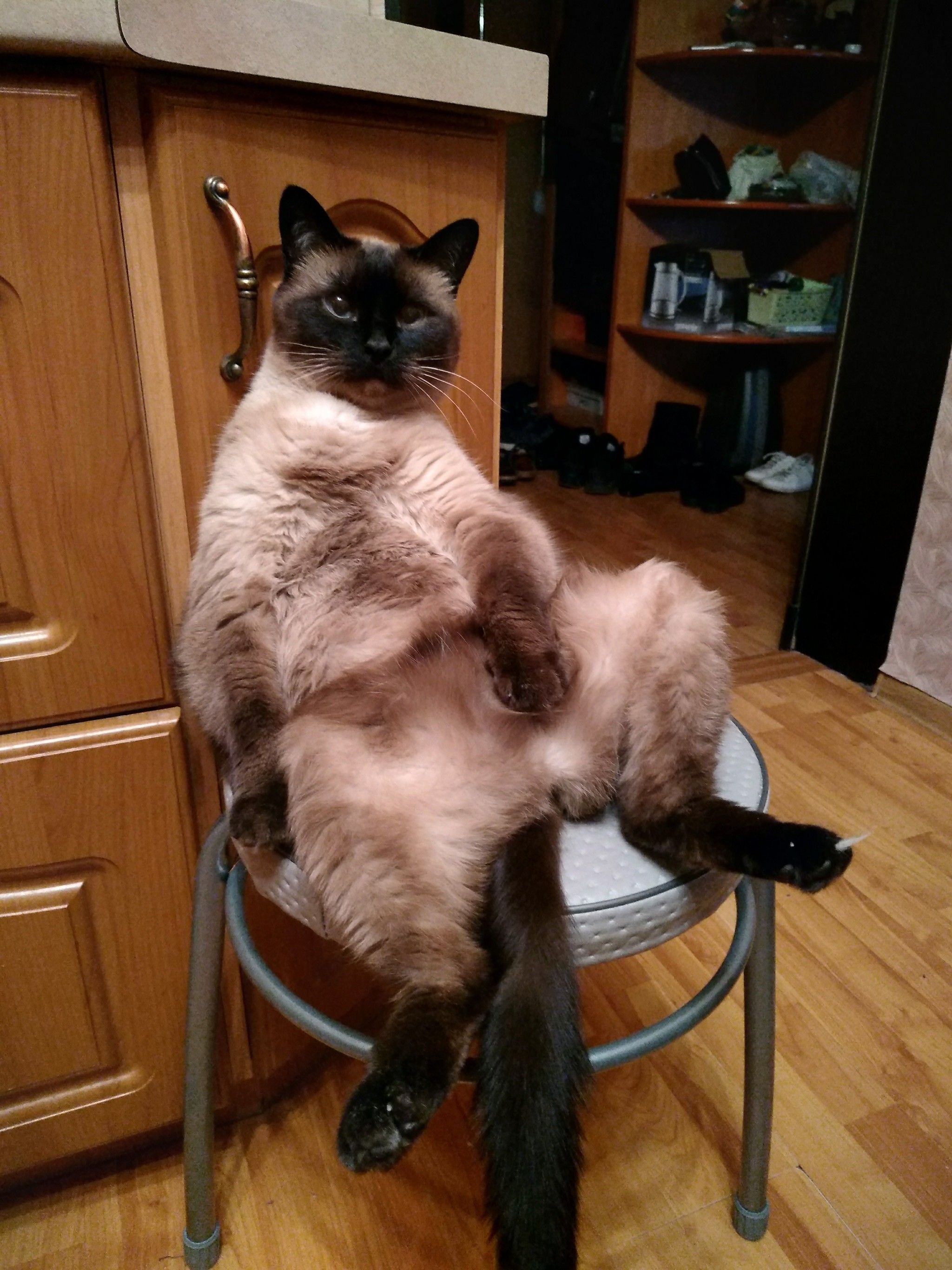 Про третье фото подтверждаю, когда мой кот ко мне лицом, я его ласково зову мякушка, но чаще он ко мне жопой, хоть на полу, хоть на кресле, да даже сидя на мне, теперь кота кроме как сракушка больше никак не зовут .