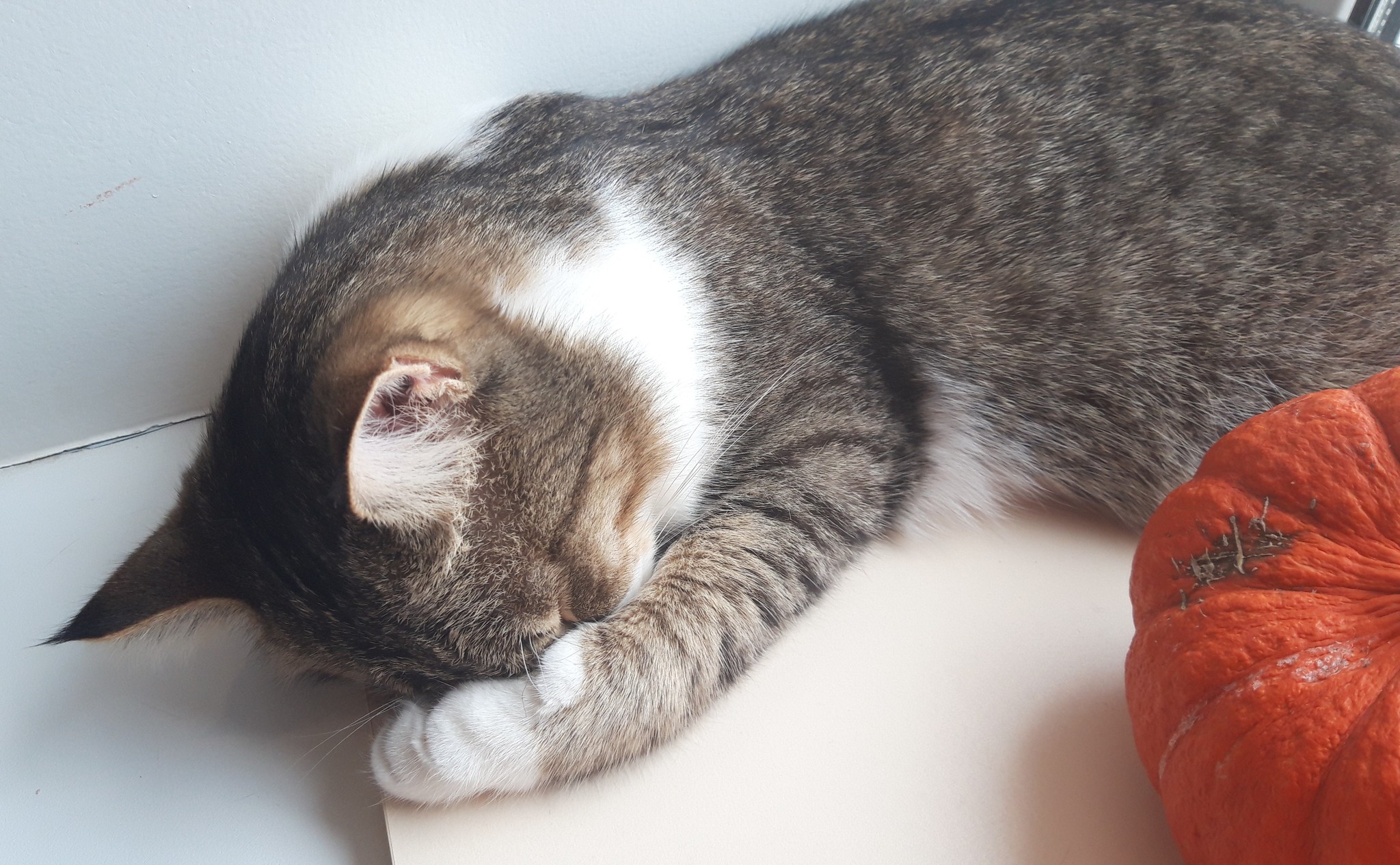 А ваще, он так спал. Минут 30. Когда я решил, что можно его погладить, он сменил позу: