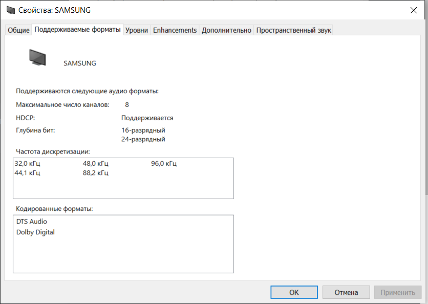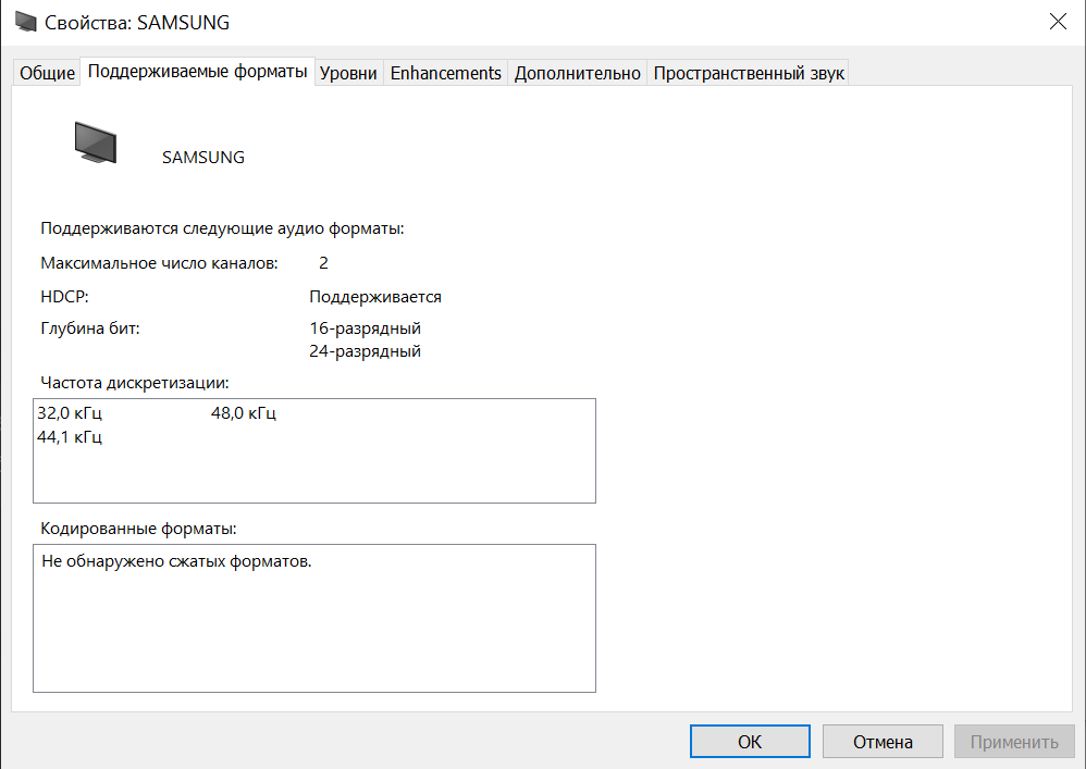 Если подключить телевизор к проигрывателю через его HDMI, то мы уже можем выводить картинку с ноута на телевизор через плеер, НО звук почему-то пропадает от слова совсем. В устройствах вывода звука всё так же остаётся Samsung.