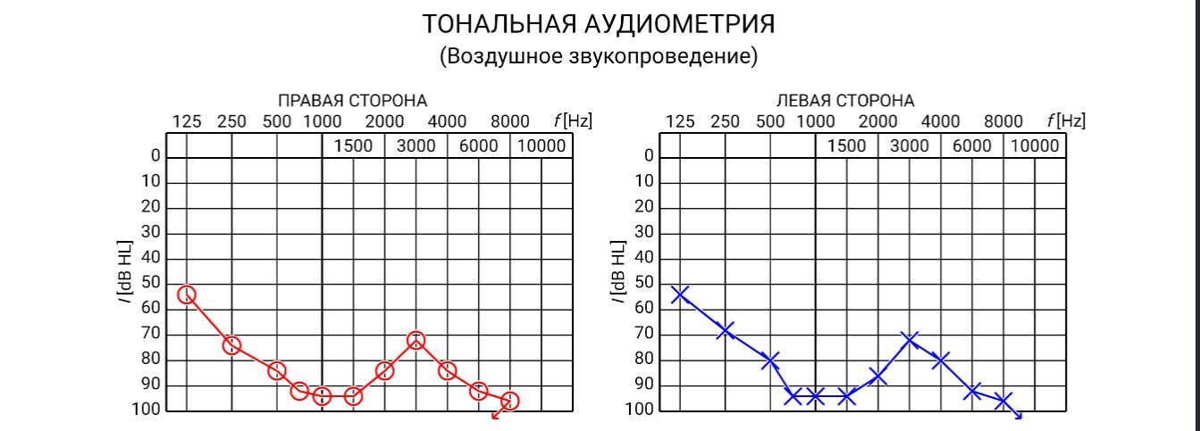 Самоаудиограмма в принципе совпадает с аудиограммой снятой у сурдолога за исключением пары точек: 1кГц (телефон не дает такую громкость в реальности там 100 dB), и 3 кГц (аудиометрист ее почему-то не измеряет т.е. точки 2кГц и 4 кГц соединены линией и пик на 3 кГц не виден на аудиограмме от судролога).