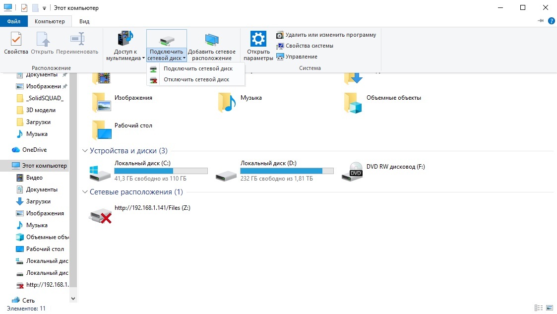 11) Заходим в Мой компьютер и выбираем Подключить сетевой диск