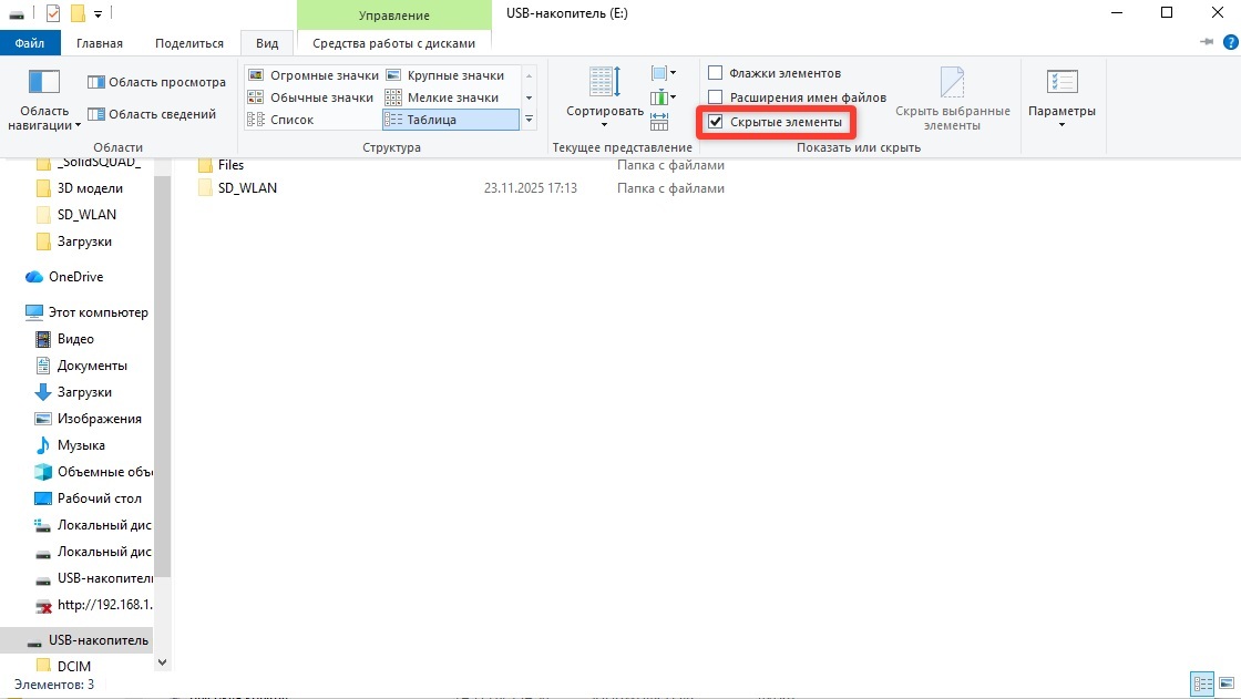 1) Вставить флешку в кардридер и разрешить в настройках показывать скрытые элементы