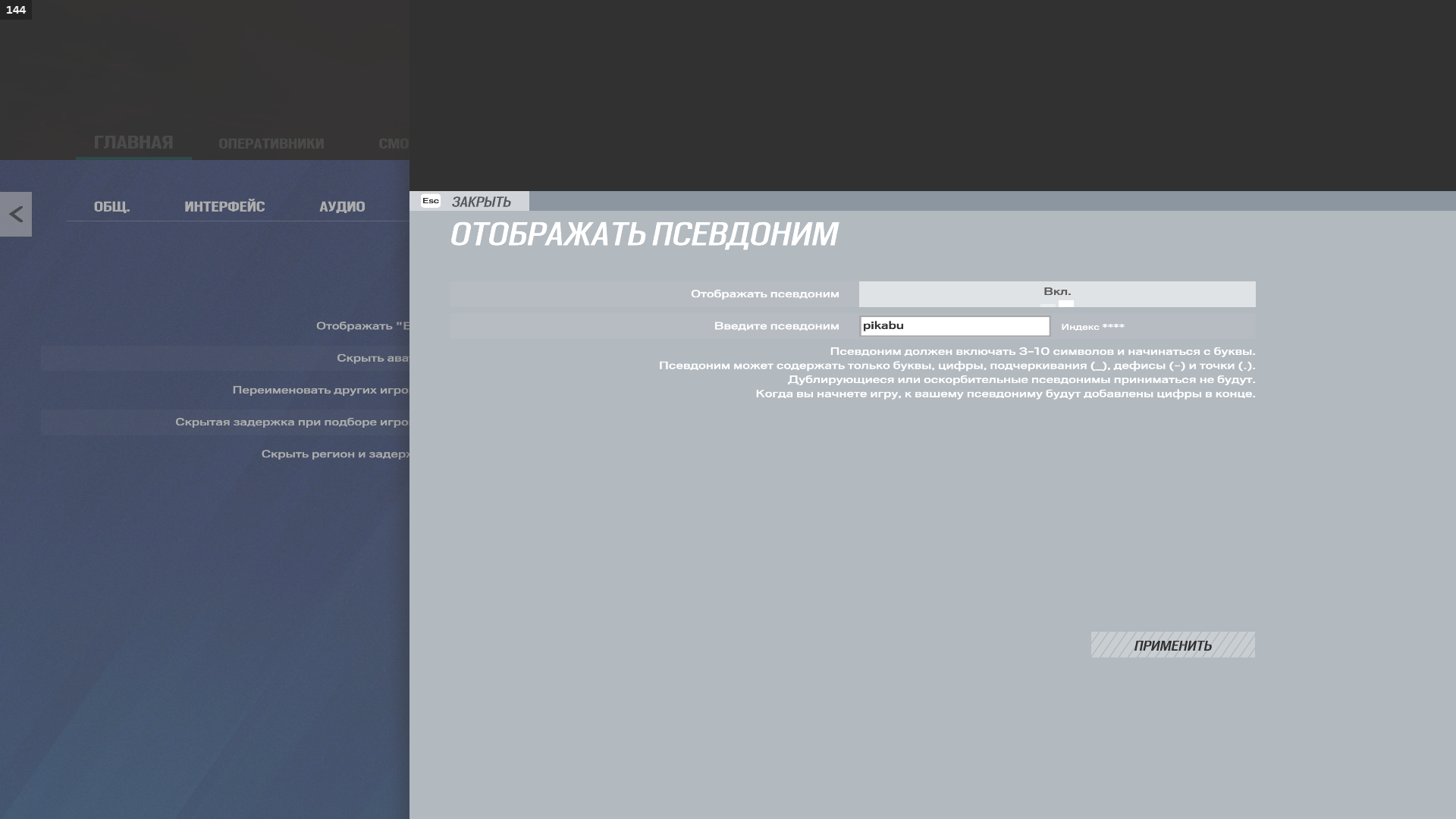 Аналогично графике, приватность необязательна. Можно поставить псевдоним например или изменить ники других игроков (игра сама автоматически ставит танго, браво и т.д.). Чаще всего этим пользуются про-игроки или стримеры.