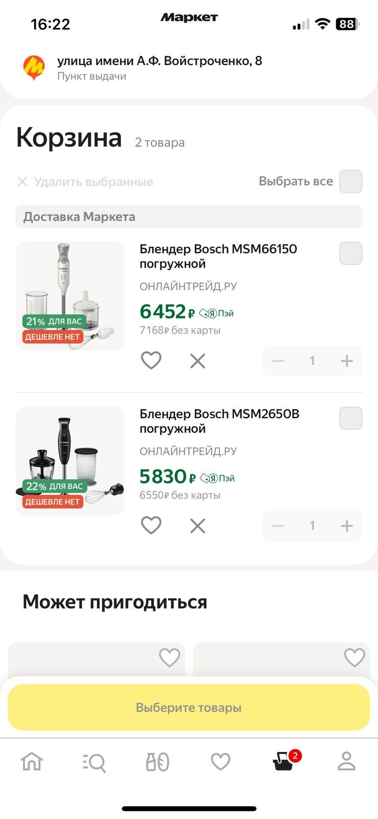 По прошествию некоторого времени выясняется, что на подарок нужен блендер определённой модели и на Яндекс Маркете выгоднее всего, а у меня как раз карта есть