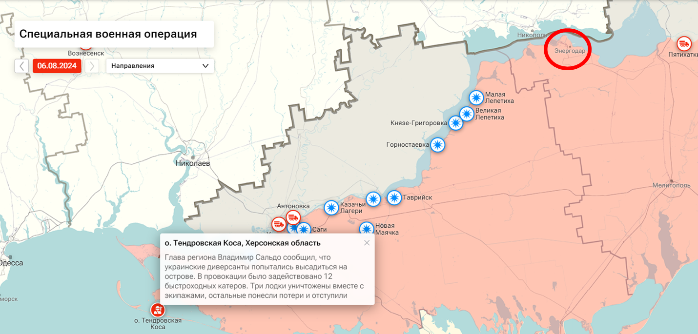 Вот это уже реальная цель. Более того, проводя одновременно операцию в Курской области и на тендровской косе, ВСУ могли планировать оттянуть войска от Энергодара, чтобы предпринять штурм.