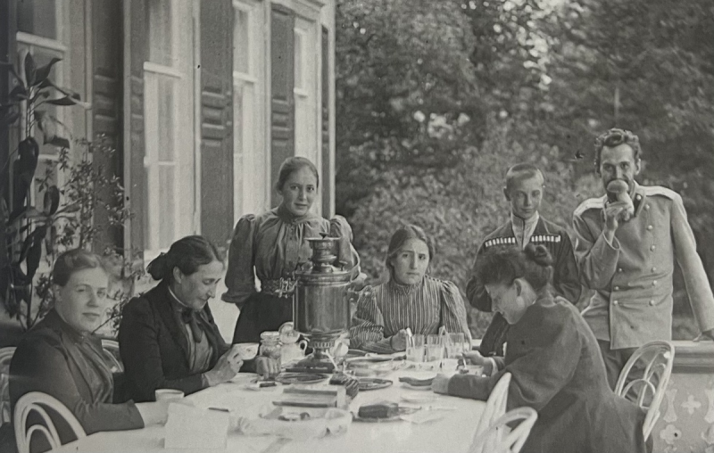 М.Ф. Якунчикова в Абрамцеве с Е.Г. Мамонтовой, ее детьми и Н.Я. Давыдовой. 1892 г. // Музей-заповедник «Абрамцево»