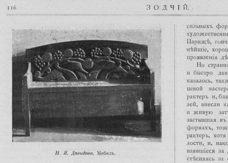 Скамья Натальи Давыдовой с московской выставки архитектуры и художественной промышленности нового стиля. 1902-1903 гг. // Журнал «Зодчий»