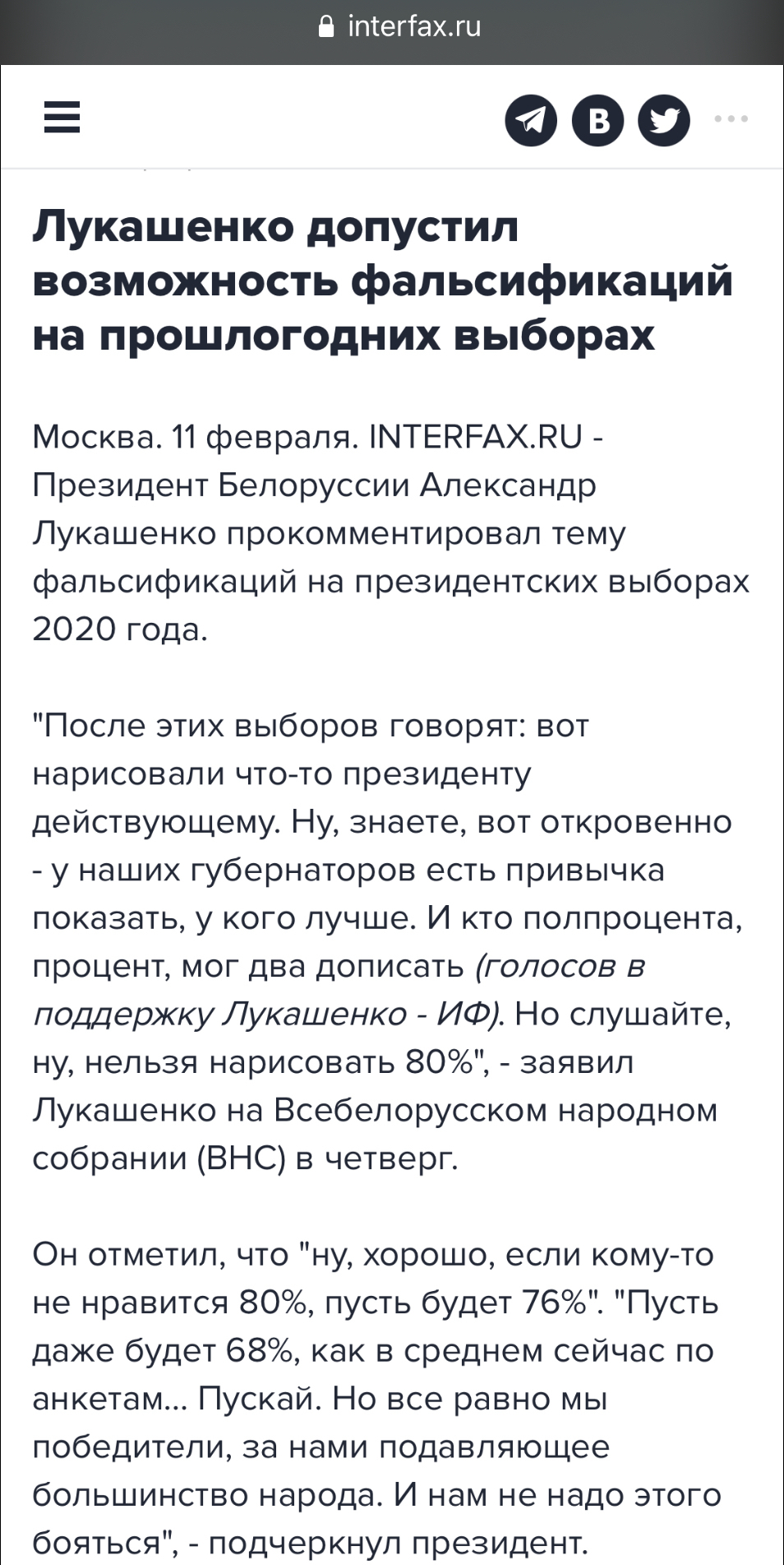 А ещё я помню вот эту новость, когда Лукашенко допустил возможность фальсификации выборов.