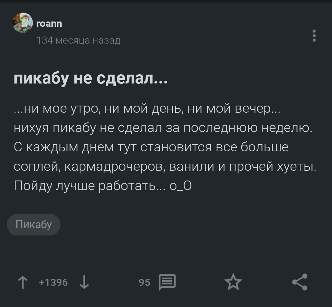 А пишут, что Пикабу падает, становится дном по сравнению с тем, что было раньше. А что было-то? Вижу, что и 10 лет назад он был не лучше. Бессмысленный и беспощадный.