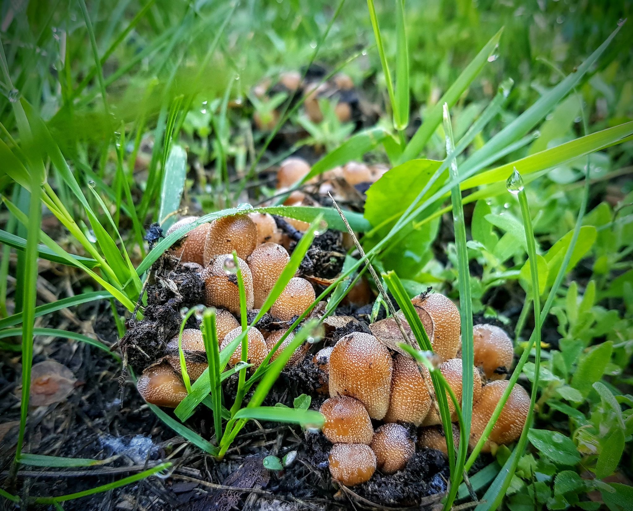 Разница во времени между первым и вторым кадром около 15 часов . Как видно на фото шляпка уже начинает отмирать или говоря научным языком происходит аутолиз .